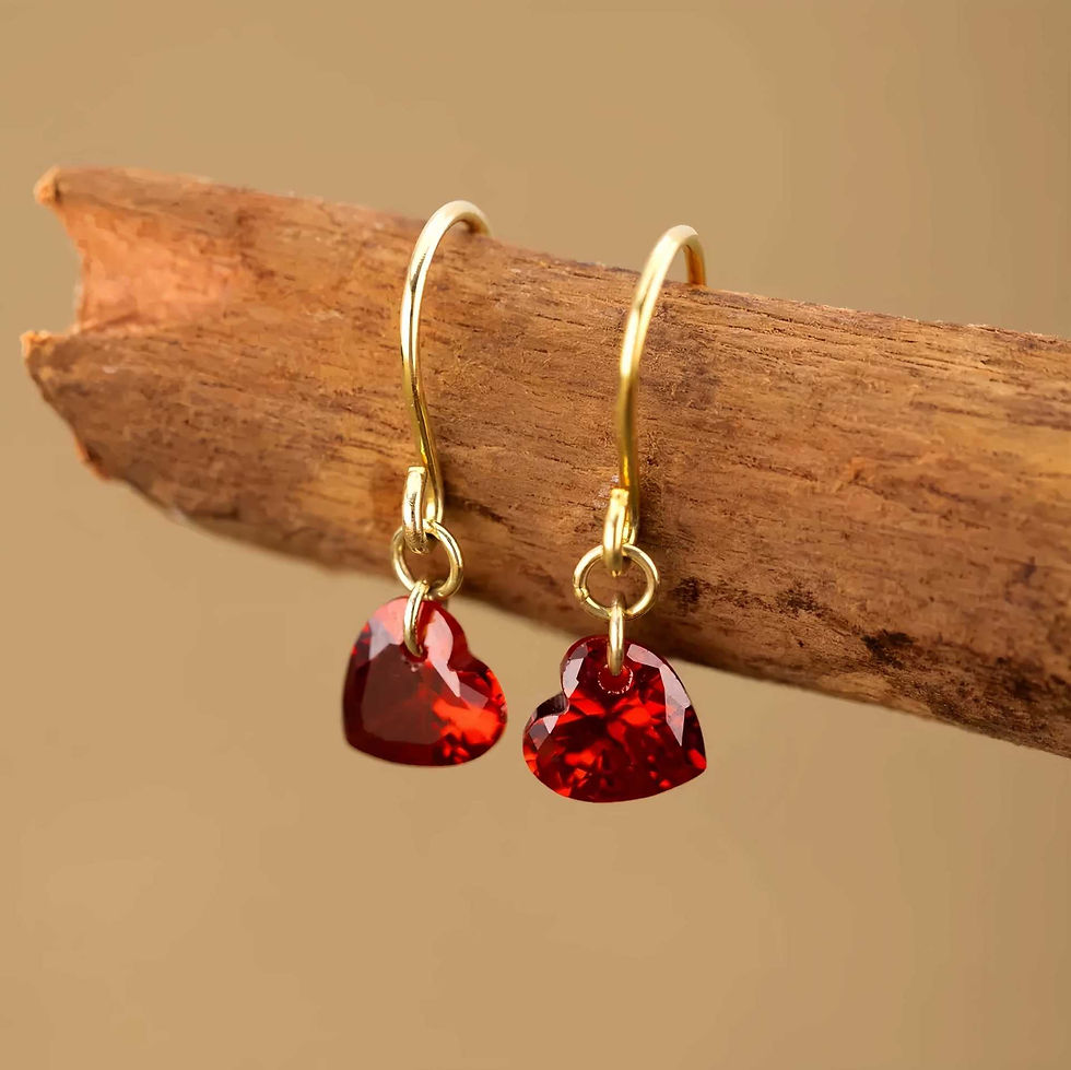 Aros Plata 925 Baño Oro Corazón Granate Gancho
